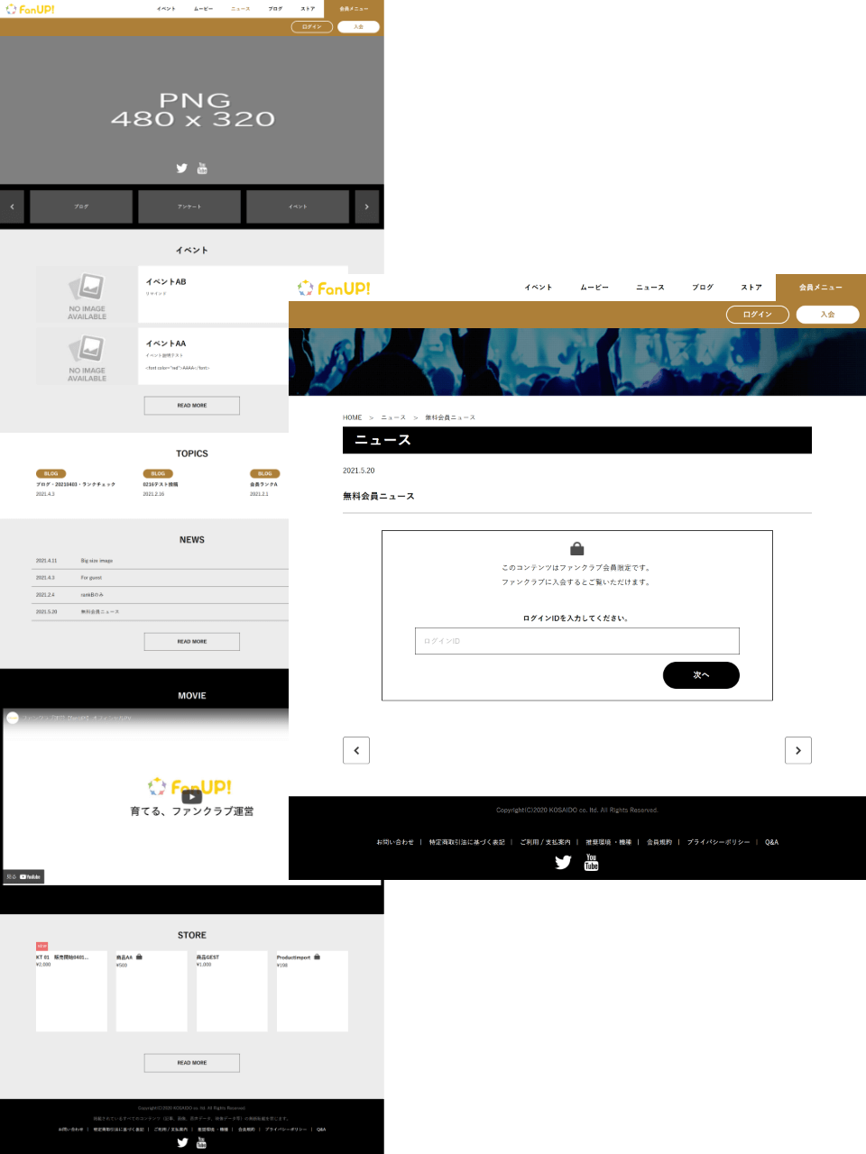 会員専用サイトでは会員向け各種コンテンツの閲覧、イベントのチケット購入、ECサイトでの購入が可能です。